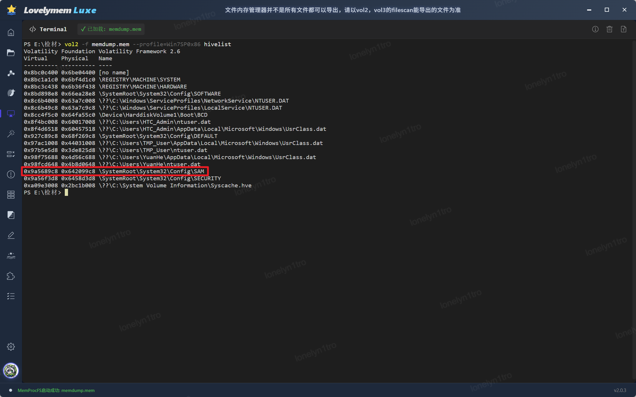 法二使用vol3进行注册表分析可知