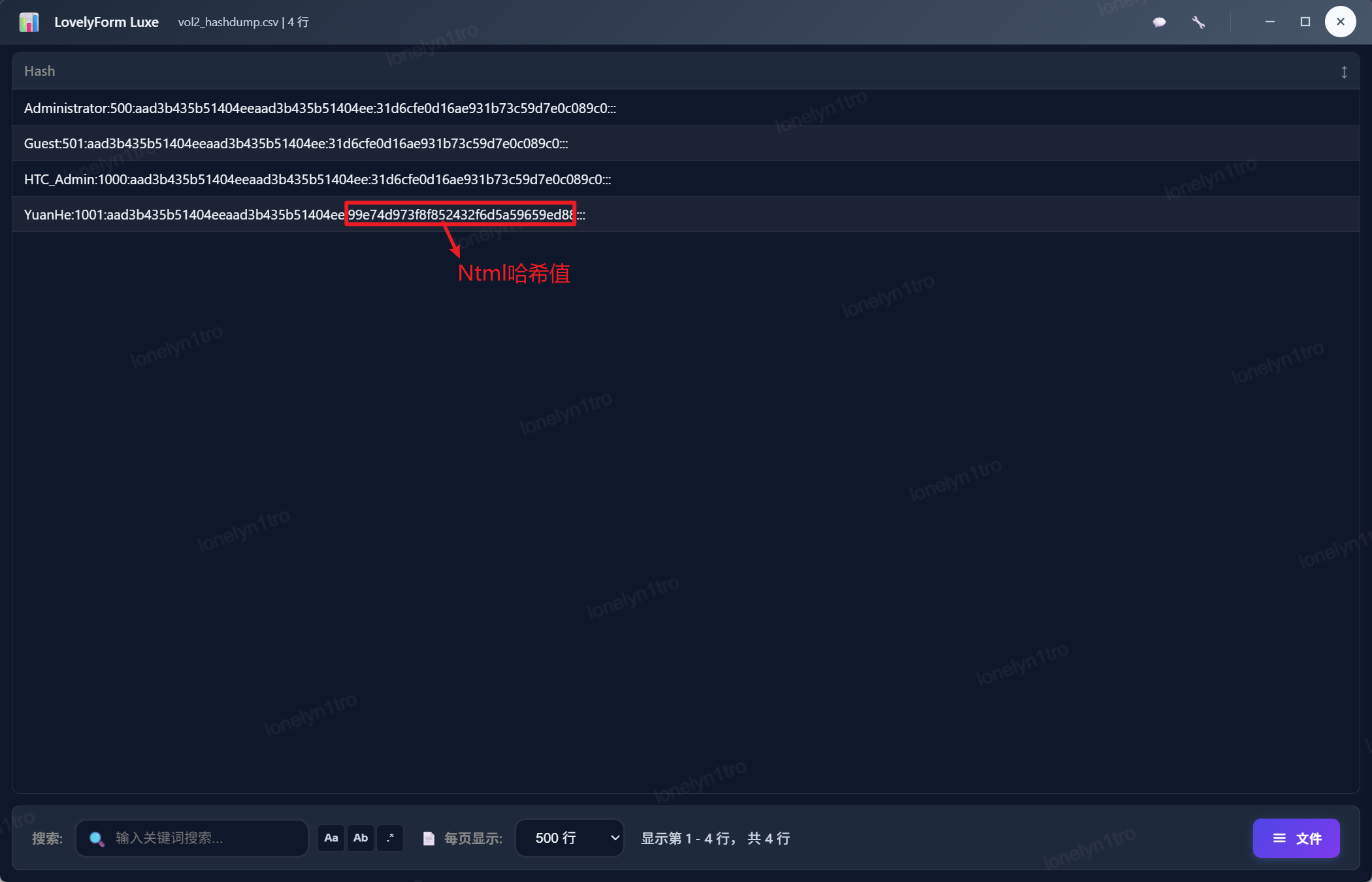 7.[单选题]分析何源的公司计算机内存镜像,用户"YuanHe”登入密码的NTLMhash是多少?(1分)