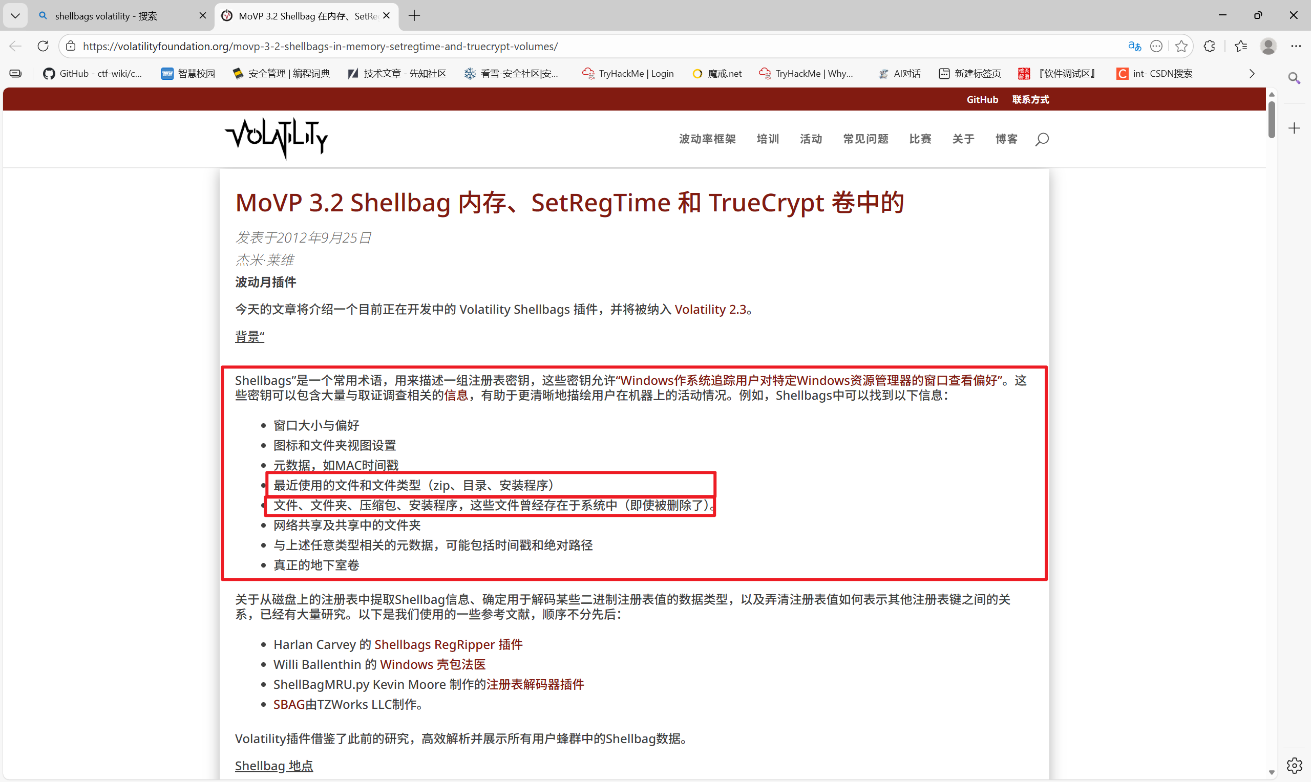 shellbag插件的用途(采自volatility官网)